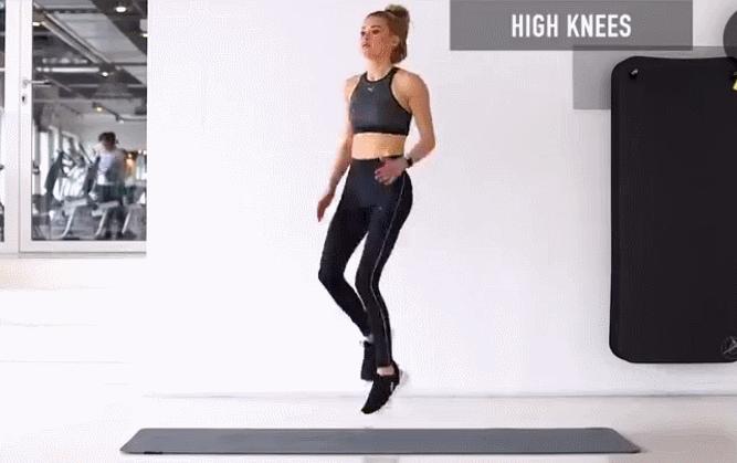 休息几分钟后,再次做原地高抬腿跑50-100下,尽力就好。