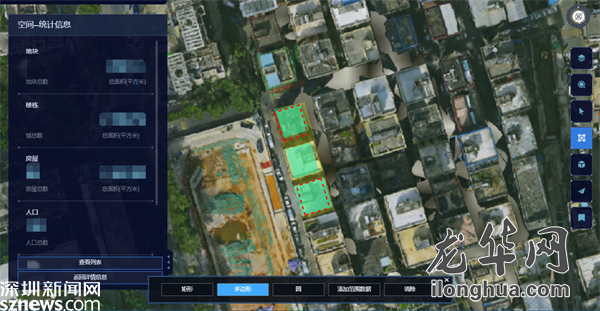基于龙华“数字孪生底座”,“龙·眼”智慧流调系统接入卫片、航拍、电子地图等图层信息,与BIM和CIM相结合,实现重点人员轨迹、封控管控防范区、特定区域的楼栋、房屋情况3D立体落图,全局布防可视化,疫情研判可观可感有深度。一键科学划定重点区域,显示该区域相关中重要信息数据,划定后相关部门即可进行资源配备,助力精准科学高效决策。