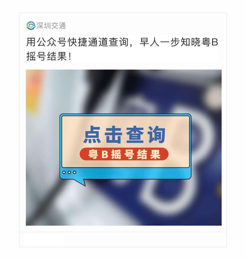 摇号当日,“深圳交通”微信公众号会第一时间推送公布粤B摇号结果的微信文章。
