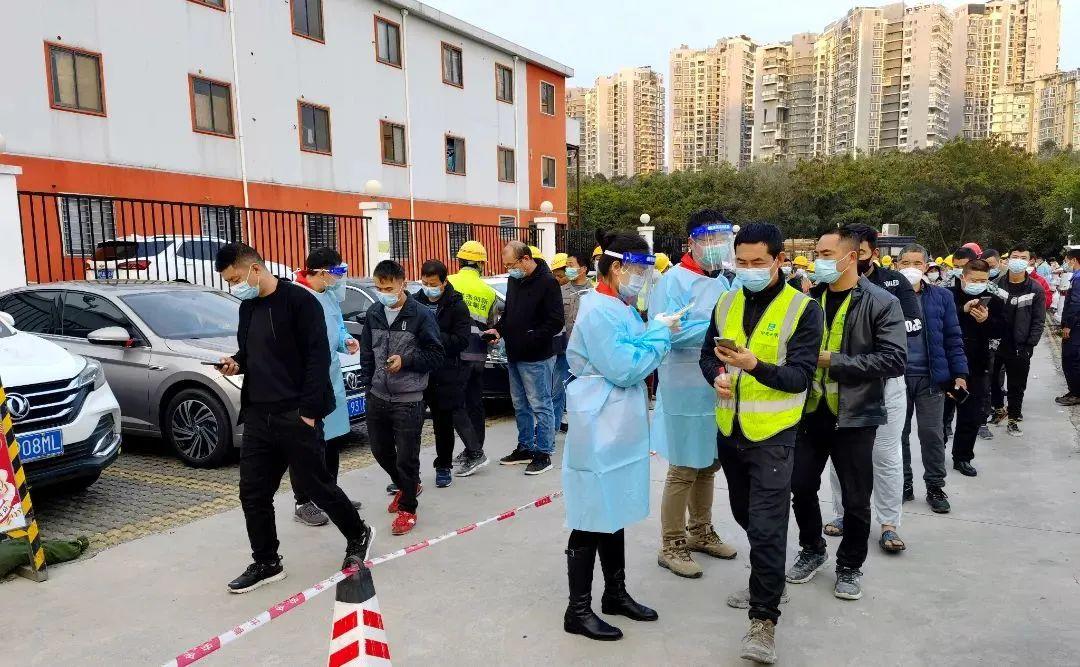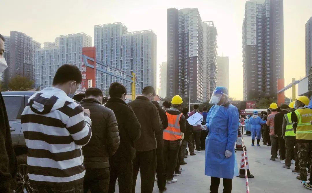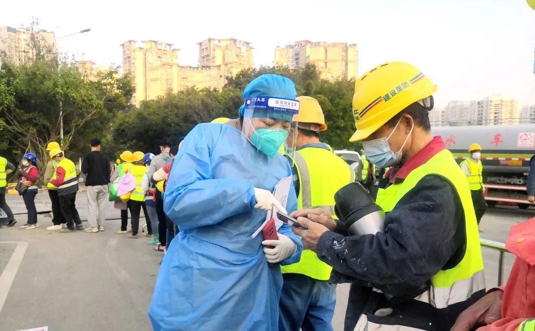2月24日起,根据桂湾社区的统一安排,在建工苑内设核酸检测点,于17:00-20:00开展大规模核酸检测,日检测人员约2300人。为保障检测工作的顺利开展,前海建投集团每天派出10名党员志愿者,与轮值先锋岗党员一起,在核酸检测点现场协助开展扫码登记、防护指引、秩序维护等工作,他们的耐心和贴心安抚了在场工友的焦虑情绪,也保障了大规模核酸检测工作的顺利开展。