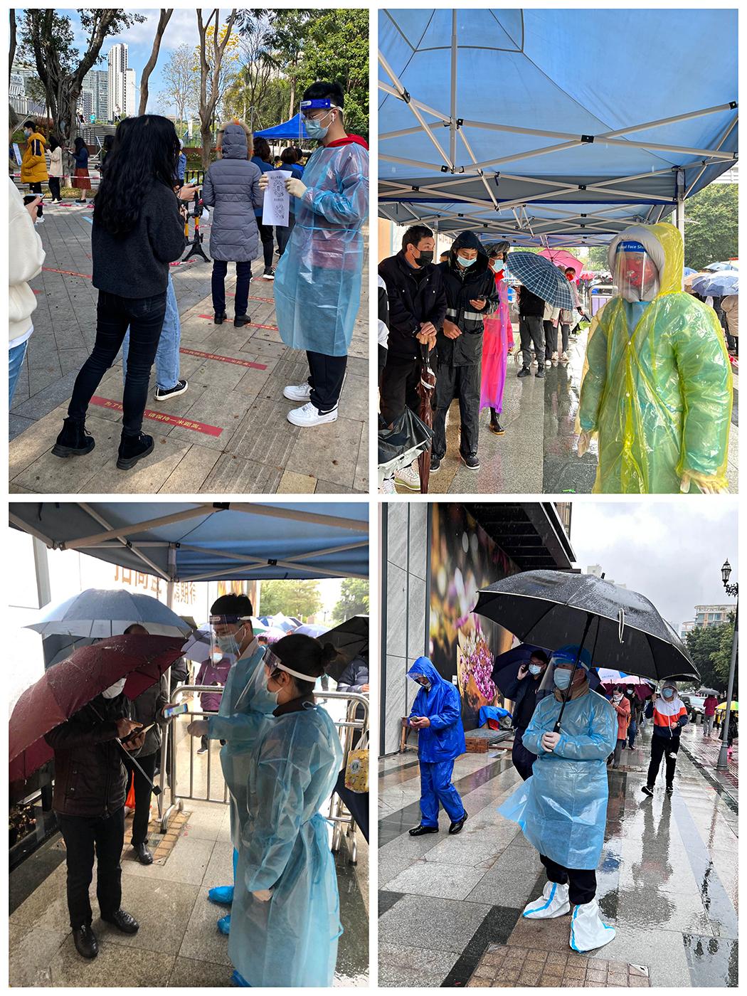 “这几天风大雨大,不管是采样点的防疫人员还是前来进行核酸采样的居民都面临着更大的挑战。尤其是负责采样的工作人员,每为一名市民采样,手部就需要用酒精消毒,酒精挥发会带走热量,长时间的工作后,他们的手冻得几乎失去了知觉。所以我们迫切希望能找到一批暖手宝送给他们。”福田区工商联负责人表示。