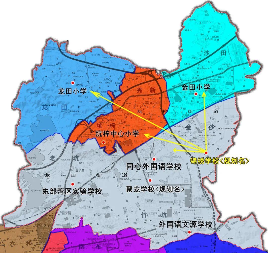 注:新增公办学校招生范围,如图示范围与文字表述不一致以文字表述为准。最终解释权归坪山区教育局。