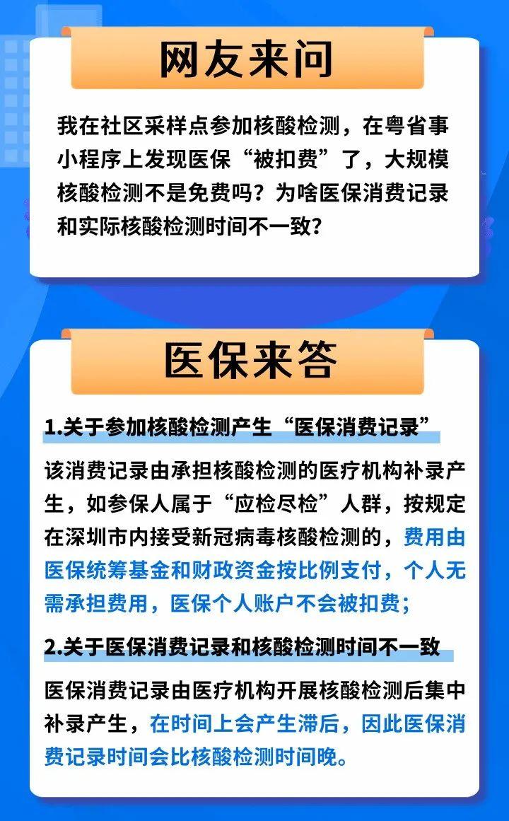 如属于广东省、深圳市新冠肺炎防控指挥部明确规定的“应检尽检”范围的人员,新冠病毒核酸检测费用由医保统筹基金和财政资金按比例支付,无需个人承担。