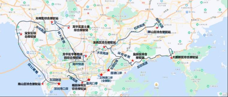 一、所有经深圳陆路口岸进出,作业目的地在深圳市内,未在口岸接驳点完成司机接驳的跨境货车,入境后按以下指定线路往返各区综合接驳站。