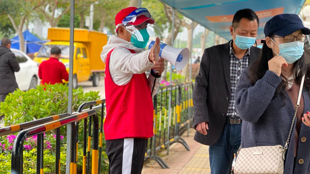 在核酸检测现场,身穿红马甲的志愿者们手持核酸检测登记二维码,积极指引市民用手机扫码登记信息,协助做好核酸采样工作。2月份以来,新区群团工作部、新区义工联发挥“1+25+N”防疫志愿服务协调联动机制作用,建立防疫应急志愿队伍,组织志愿者前往核酸检测点、疫苗接种点、社区卡口开展志愿服务。截至目前,已有逾370名志愿者参与,累计服务时长超5000个小时。
