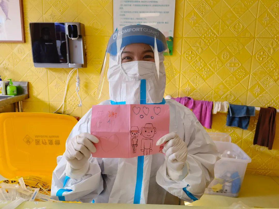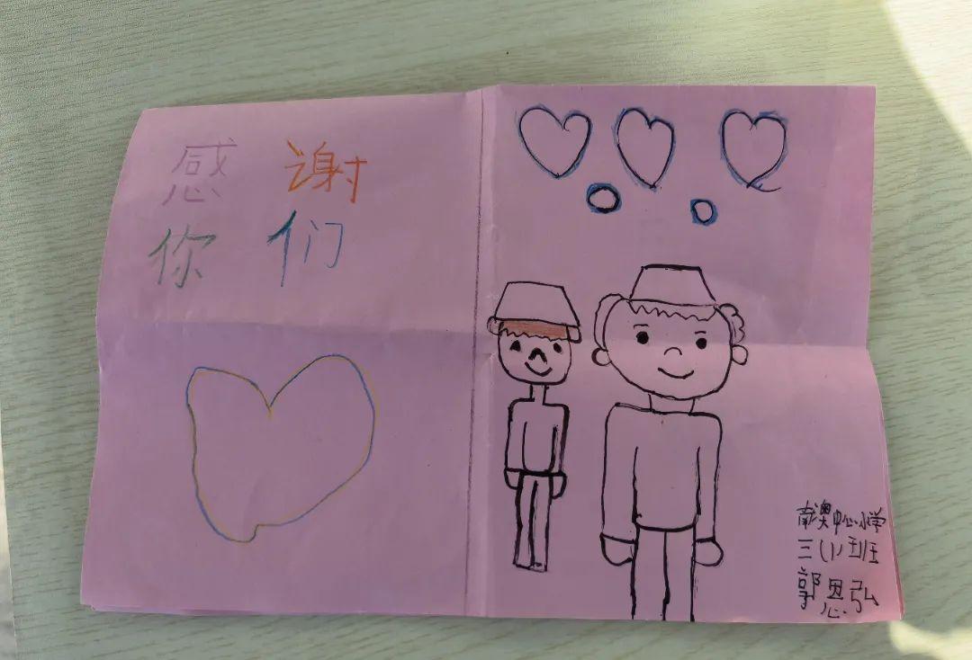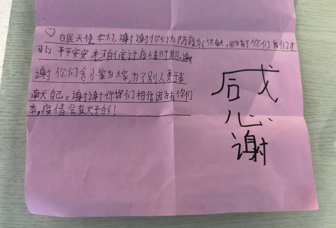 “白医(衣)天使们,谢谢你们为防疫的供(贡)献,让我们可以平平安安……”近日,南澳中心小学三年级的郭恩弘用稚嫩的文字向附近核酸检测点的医护人员表达真挚的感谢,还与家人一起熬制姜茶送到核酸检测点。这让现场工作人员不由得心里一暖,自豪地向镜头展示小朋友亲手制作的感谢信。