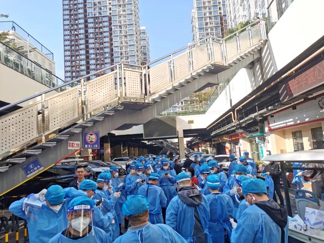 后备队员争先恐后向组织申请加入战斗,为保持核酸检测不间断,经营计划部章鹏等队员顾不上吃饭,从下午3点一直忙碌到晚上近10点,才喘口气吃上了盒饭。集团基建事业部黄华等,本身已参与了社区外的防疫工作,在忙完白天的工作后,主动要求还要参加夜晚的防疫工作。凌晨1点的前海星光点点,而我们前海控股的队员秦江华、李世渊、黄华、于天翊、马硕、沈雪彤、蓝洁琳、黄嘉莹等还在坚守在防疫点,汗水浸湿了防护服,夜色朦胧了护目镜……正是他们的无眠,换来了社区居民的安眠。