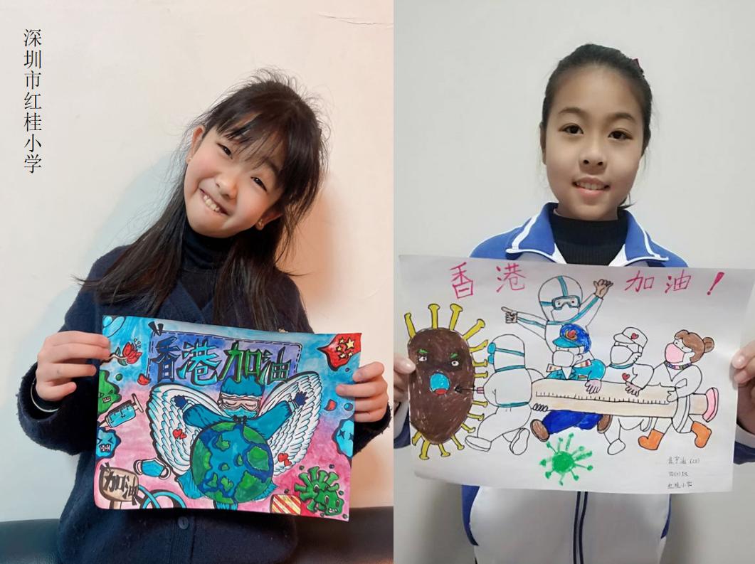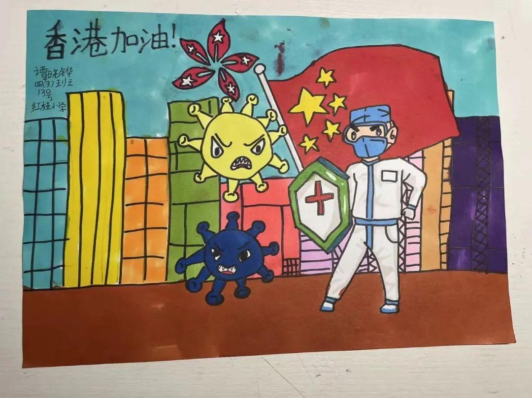 阮睿婕同学的绘画作品《香港加油》色调鲜明,线条流畅,让人印象深刻;