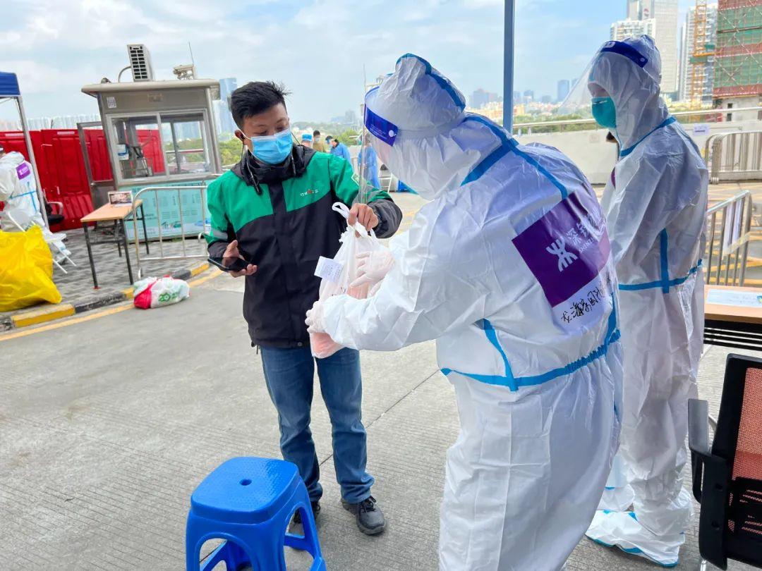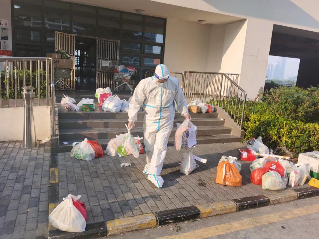 在龙海家园封控时段,深铁物业防疫突击队将持续开展志愿服务,除了协助核酸检测、宣贯引导等常规性防疫工作外,还持续为隔离住户提供切实便利的物质保障,提供快递领取、购买生活物资、垃圾清理等生活性服务,全力满足居民日常生活需求。