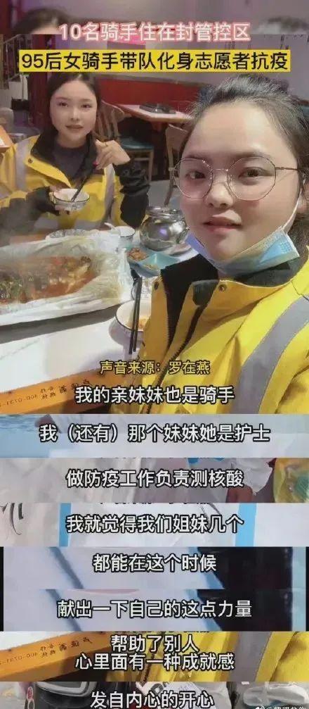 “社区需要很多志愿者,调动各种社会力量参与疫情防控。正好我跟妹妹都是外卖骑手,在物资配送方面比较专业,很熟悉这里的楼层,所以我主动报名担任志愿者。”