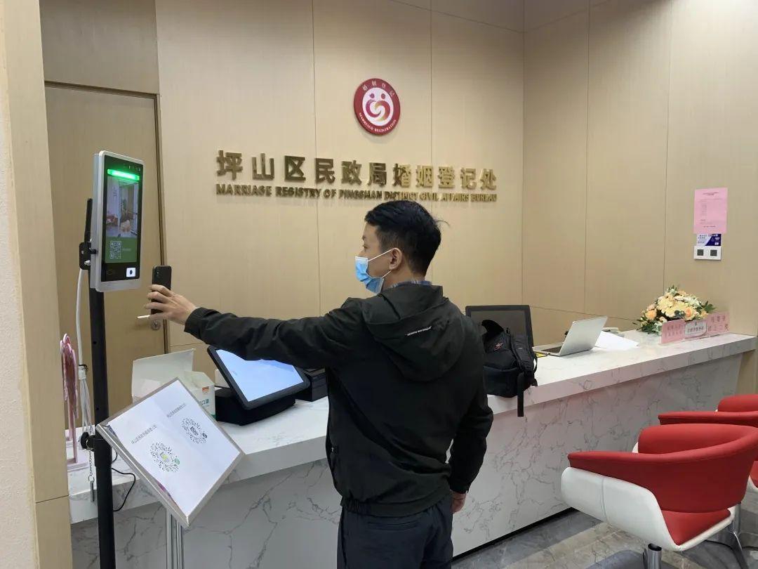 群众使用“电子哨兵”进入区民政局婚姻登记处