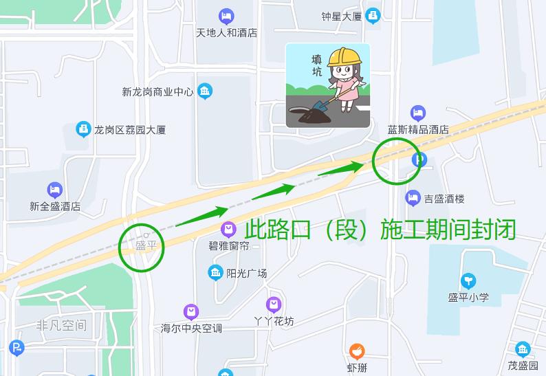 因地铁16号线龙城中路站、龙平站爆破工程的施工需要,以下路段将有不同的临时调整。