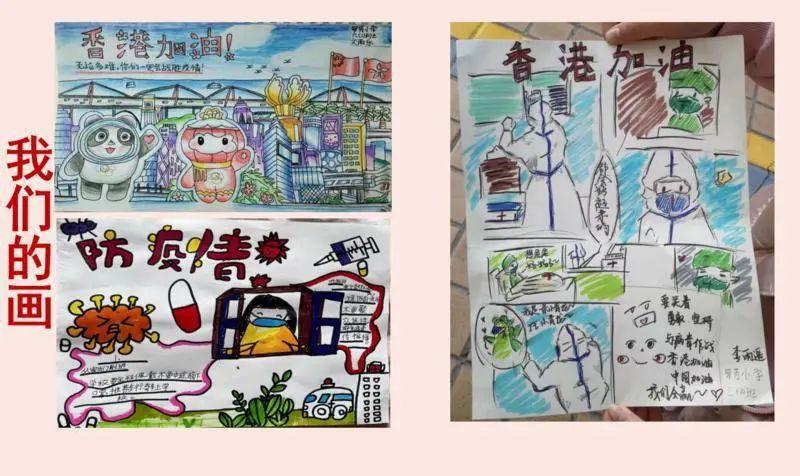 翠北实验小学的学生鲍熙、厉鑫杨分享了他们创作“深港童心,携手抗疫 ”抗疫艺术作品背后的故事,希望通过美术创作为香港的小伙伴们传递温暖和力量。