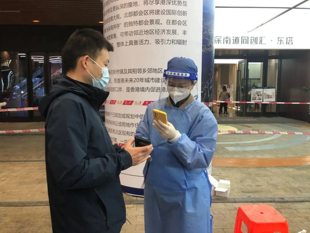 党有号召,团有行动。华润万象生活深圳万象城党团代表前往罗湖区翠华社区公园开展志愿防疫工作。几顶帐篷,几盏灯光,夜色中身穿天使白的医护、身着防护蓝的青年志愿者们带给市民满满的安全感。“姑娘,这个怎么扫?”市民放心地向队伍中的志愿者求助,得到了耐心的解答与帮助。
