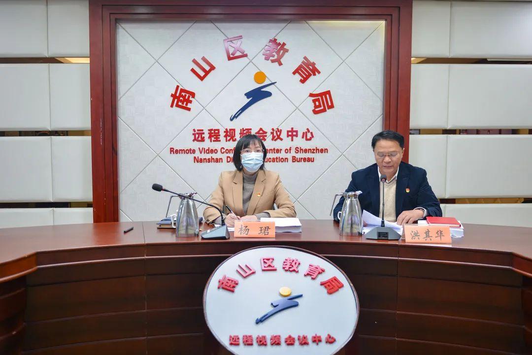 根据防疫要求,本次会议创新采用视频会议线上述职及评议方式,区教育局领导班子成员,区委教育工委委员、局机关各科室、教科院主要负责人,专职责任督学,两代表一委员代表以及区委教育工委下属一级党组织书记共聚线上参会。会上传达了省委、市委和区委听取所属党组织书记抓基层党建工作述职会议精神,10个基层党组织进行线上述职,会议由南山区教育局主任督学洪其华主持。