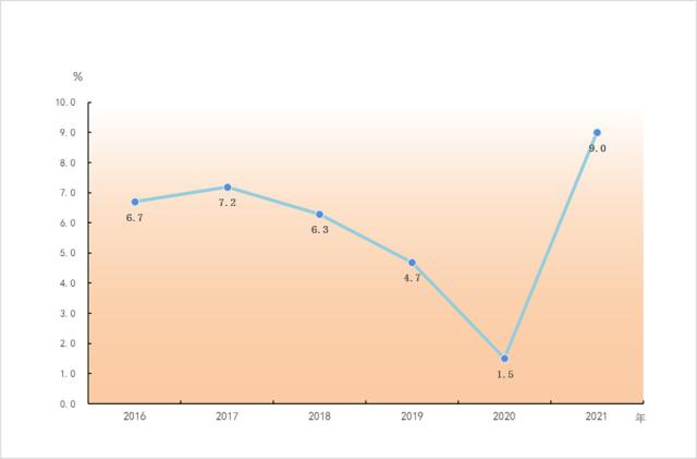 2016-2021年规模以上工业增加值增长速度