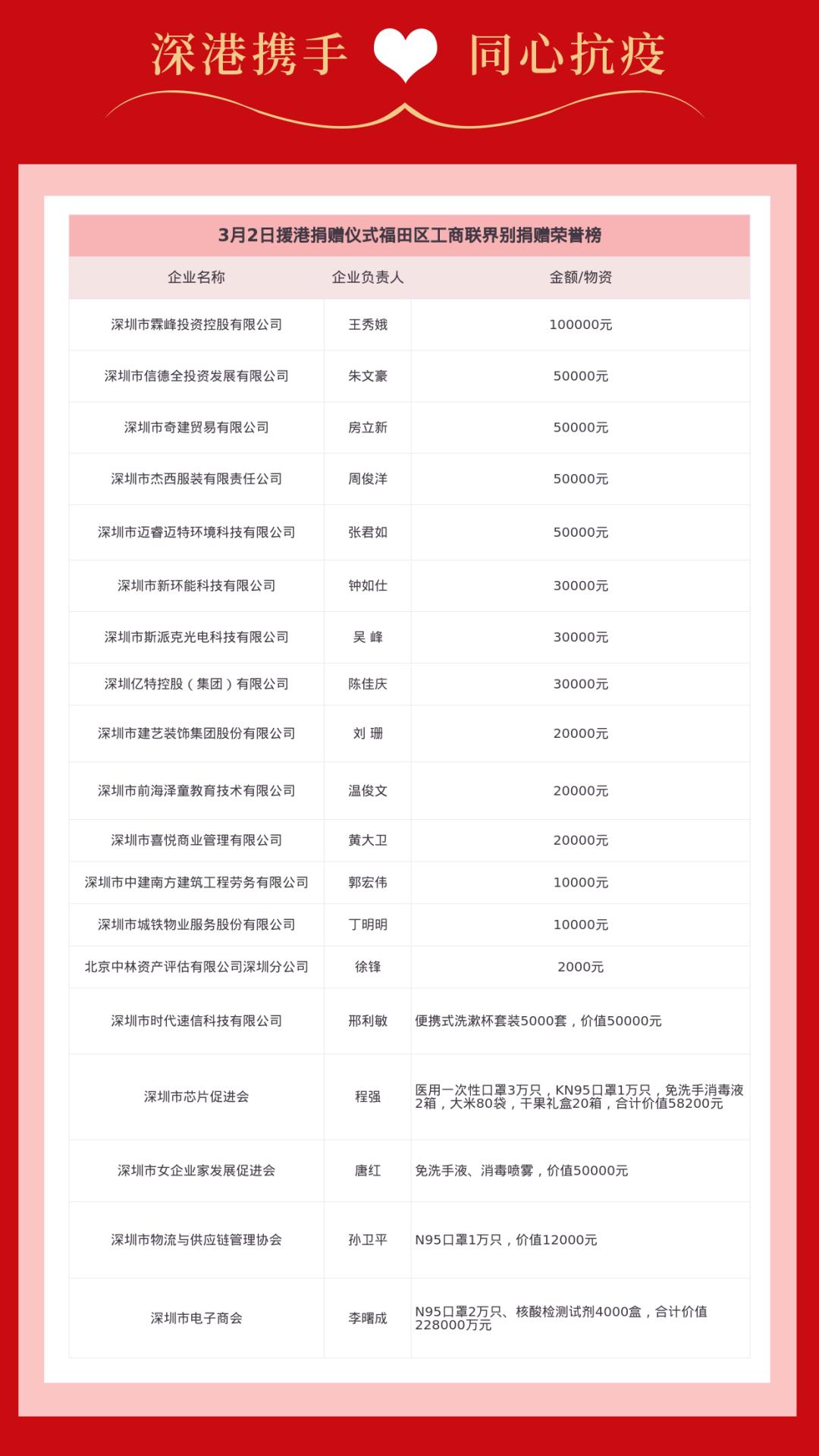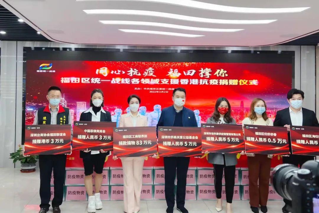 香港疫情形势严峻,在港同胞的健康安全牵动着五湖四海的心。同心抗疫,深港联动,区工商联积极动员福田区民企参与3月2日下午举行的“同心抗疫·福田撑你——福田区统一战线支援香港抗疫捐赠仪式”。