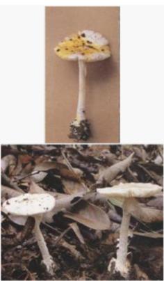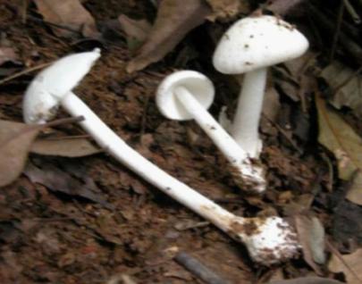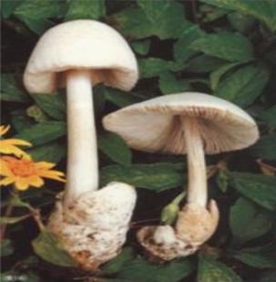 在广东地区,导致中毒人数最多的两种蘑菇分别是白毒伞(致命鹅膏)和铅绿褶菇,其中白毒伞又是毒性最强的。白毒伞的白色菌体幼时卵形,后菌盖展开成伞状。常在黧蒴树树荫下群生或散生,分布在广州、清远、肇庆等地,大量生长于春季温暖多雨的3~4月,5~7月也少量出现。
