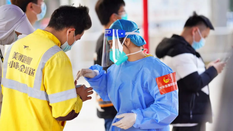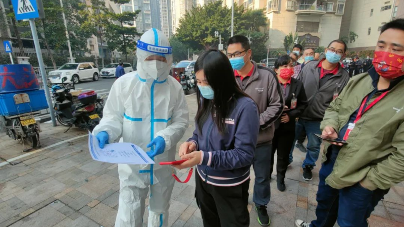 3月的深圳气温逐渐升高,这些志愿者在岗位上一站就是几个小时,忙起来连水都舍不得多喝一口,防护服下汗水浸润了衣服,他们始终专注地协助现场医护人员开展扫码登记、秩序维护等工作。