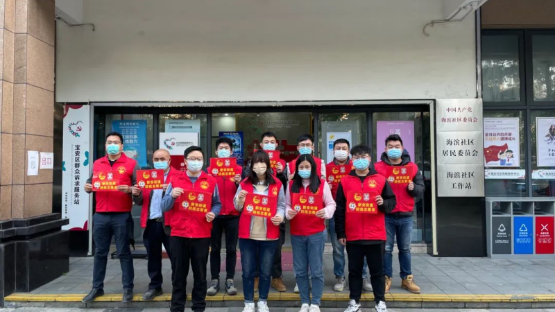 2月25日,中建二局发起组织了志愿服务队,11名青年穿上红马甲来到海滨社区工作站协助核查疫情防控公安大数据。