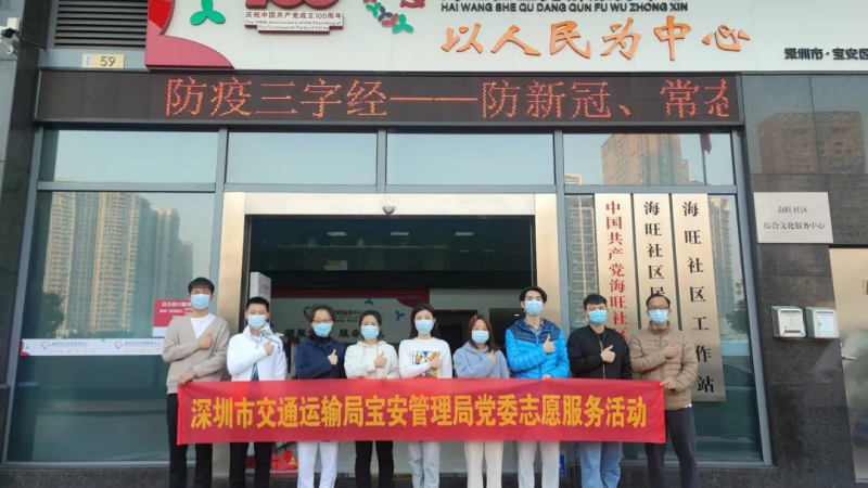2月27日,深圳市交通运输局宝安管理局19名青年组成的志愿服务队,分为早班、中班两组深入新安街道海旺社区84区公园、西城上筑、天悦龙庭、都市茗荟4个核酸检测点位开展志愿服务。