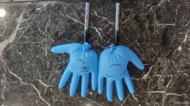 在执行转运任务时,王勇的小组曾经遇到过年龄很小的孩子。“因为害怕,他们会在车上哭闹,我们会想尽办法安抚他们的情绪。”医务人员会变出“笑脸手套”,这是同组护士就地取材,专门为小朋友们画的“小伙伴”。