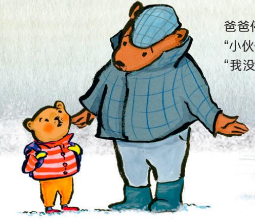 《熊会滑雪吗?》还有一个非常精彩的地方。小熊佩戴好助听器,听到那句“听得见我吗?"的时候,他感叹世界原来这么响亮。但是转头他就来了一句:
