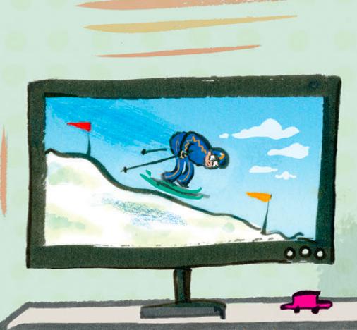 吃饭时,电视上播放着滑雪比赛,爸爸问小熊:“熊会滑雪吗?”