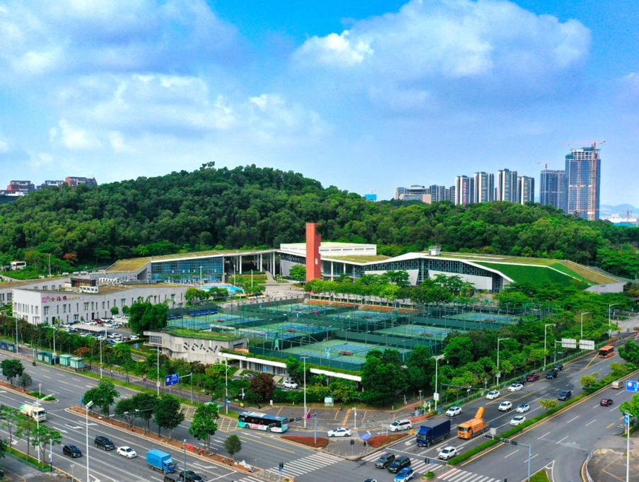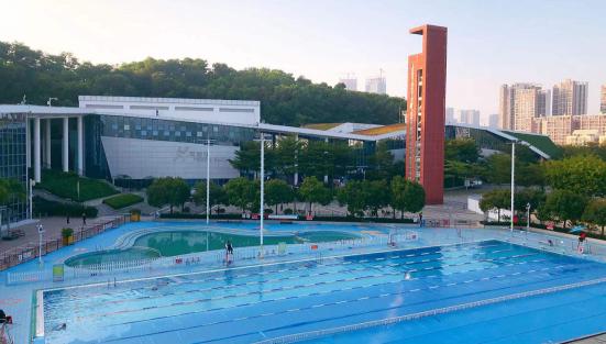 光明区群众体育中心位于光侨路与华夏路交汇处,占地面基61885㎡,总建面积21901㎡,功能设施包括专业室内外网球场、羽毛球馆、室外游泳池、篮球场、乒乓球馆、健身房等多项运动场馆,同时场馆配套完善,有新润桦大酒店、润桦全福楼、简阅书吧、普天新能源汽车充电站、自动售货机、停车场等多项便民场所,是集全民健身、休闲娱乐、培训基地于一体的文化体育休闲生活综合体,能满足承办单项赛事和全区综合性体育赛事的需要,是光明区重大民生项目之一。