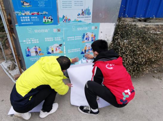 近日,六和社区党群服务中心工作人员联合工会工作者,妇联巾帼志愿者,在辖区飞西、飞东、新和等卡口张贴防疫宣传海报和安心行动的宣传标语,提高辖区居民的防疫意识。
