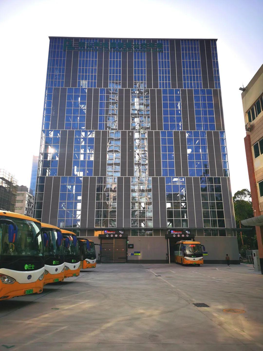 南山中心区、南山科技园智慧公交车库是首批建成并投入运营的智能化立体钢结构新能源公交车库,具有首创性和技术创新性,均采用全钢框架结构、全装配式安装,车库外立面由专业团队精心打造,简约大气,与周边建筑协调。
