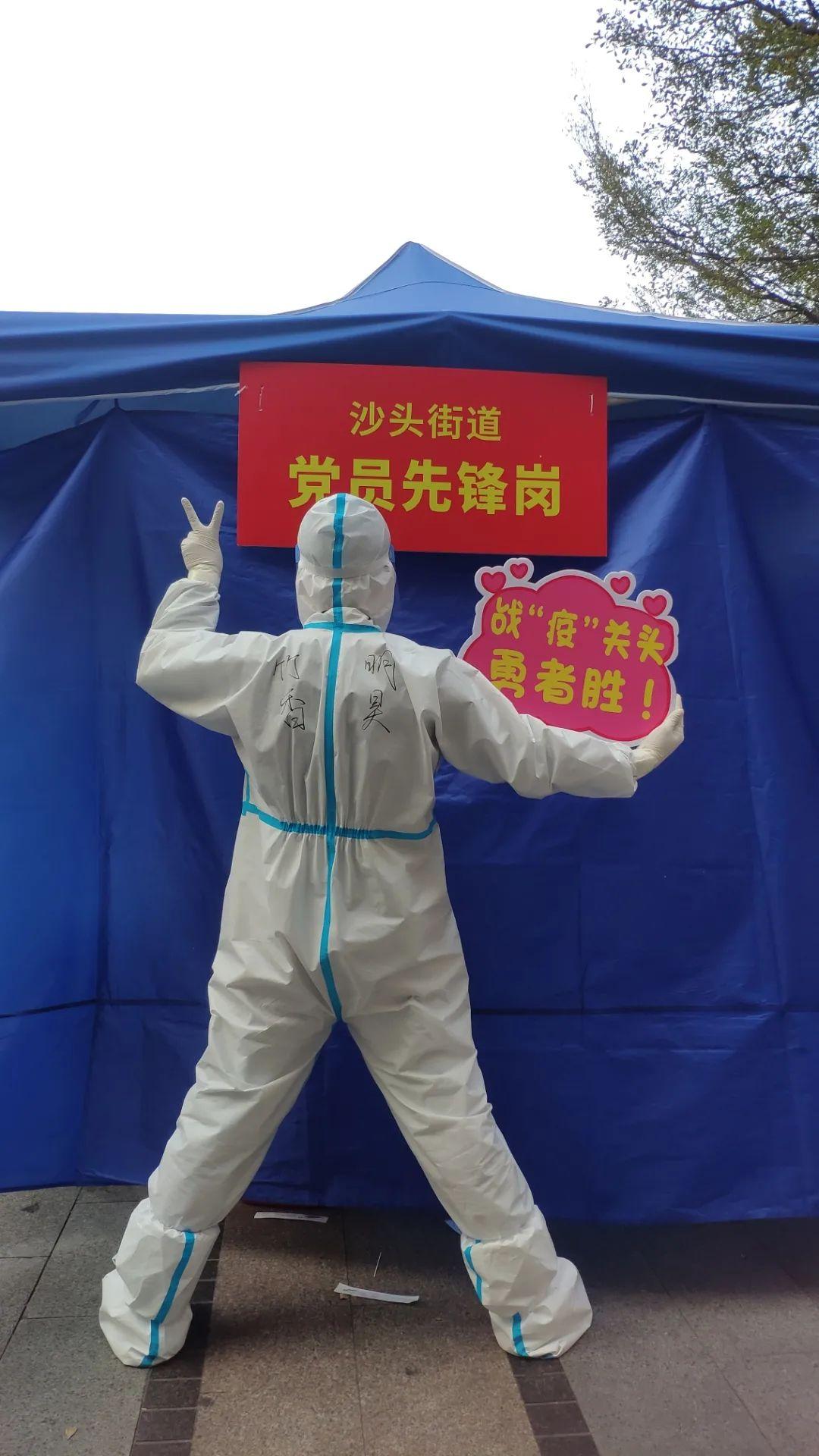 教师的职责是燃烧自己照亮学生,志愿者的职责是燃烧自己为疫情的胜利照亮方向,防护服下看不清我们的脸,但无畏的我们发着希望的光。