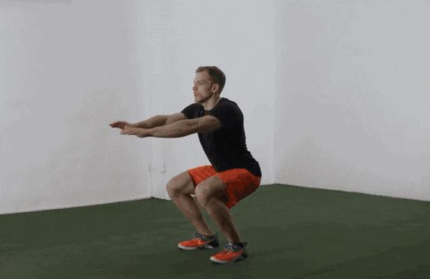 动作要点:臀部向后下蹲,挺直腰背。保证膝关节和脚尖处于同一方向,不要过度内扣或外旋膝盖,尽量蹲深,蹲到大腿平行地面或平行地面以下,吐气蹲、吸气起。深蹲有益于肌肉量增长,提高代谢,增加减脂效果。