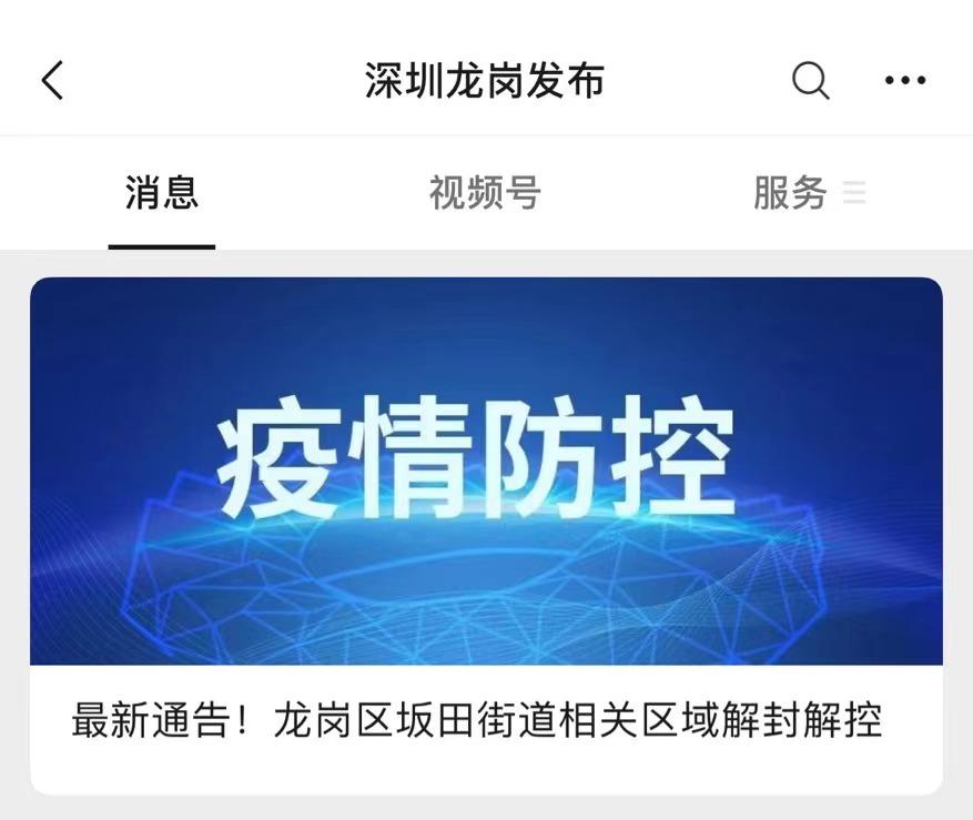 根据疫情处置进展,经研究决定,自2022年3月3日21时起,龙岗区坂田街道解封相关封控区、管控区、防范区,现通告如下: