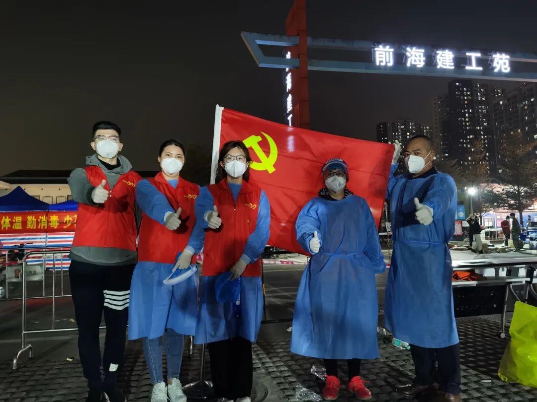 前海联合物业、中建二局、中建五局、中建安装、中铁广州局、南山保安公司、凯铭电气等多家入驻单位积极报名,与前海建投集团党员、团员一起形成了百余人的志愿队伍,当天即迅速投入到前海建工苑的核酸检测志愿工作中。