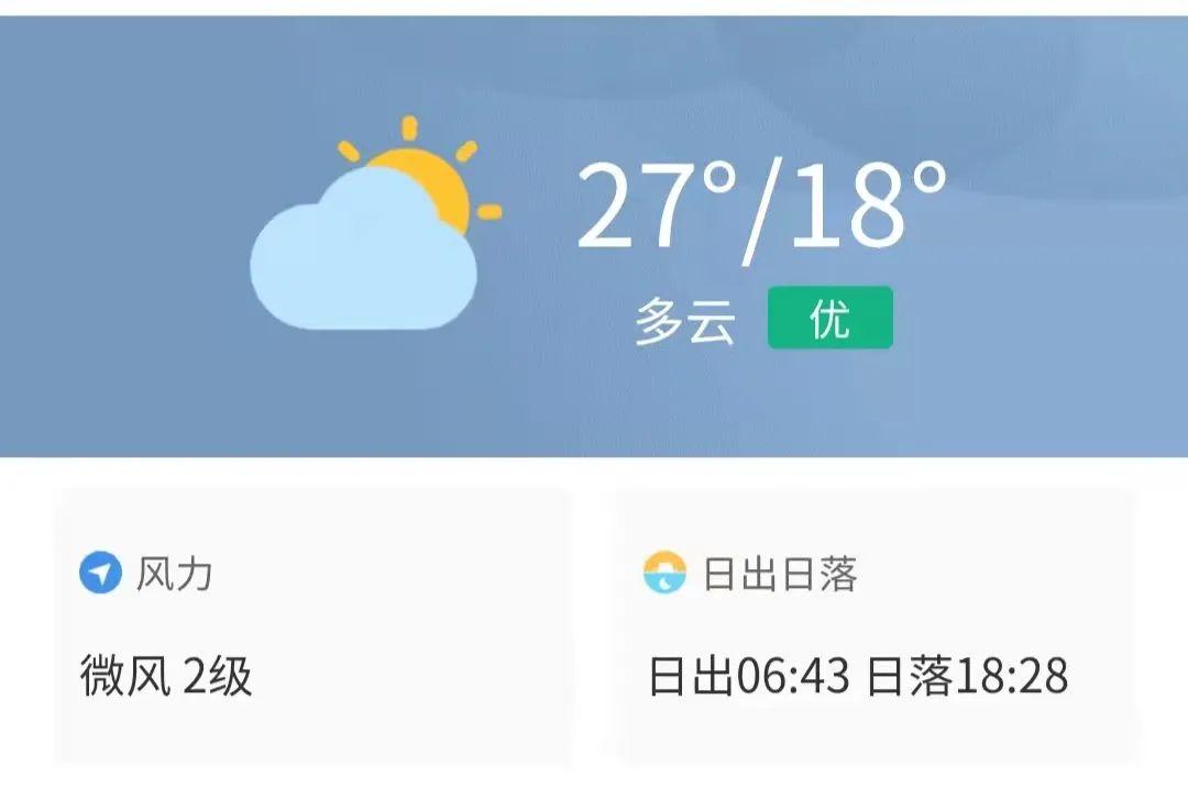 4日多云,早晚有轻雾或霾;气温18-27℃;偏东风2-3级;相对湿度55%-95%。