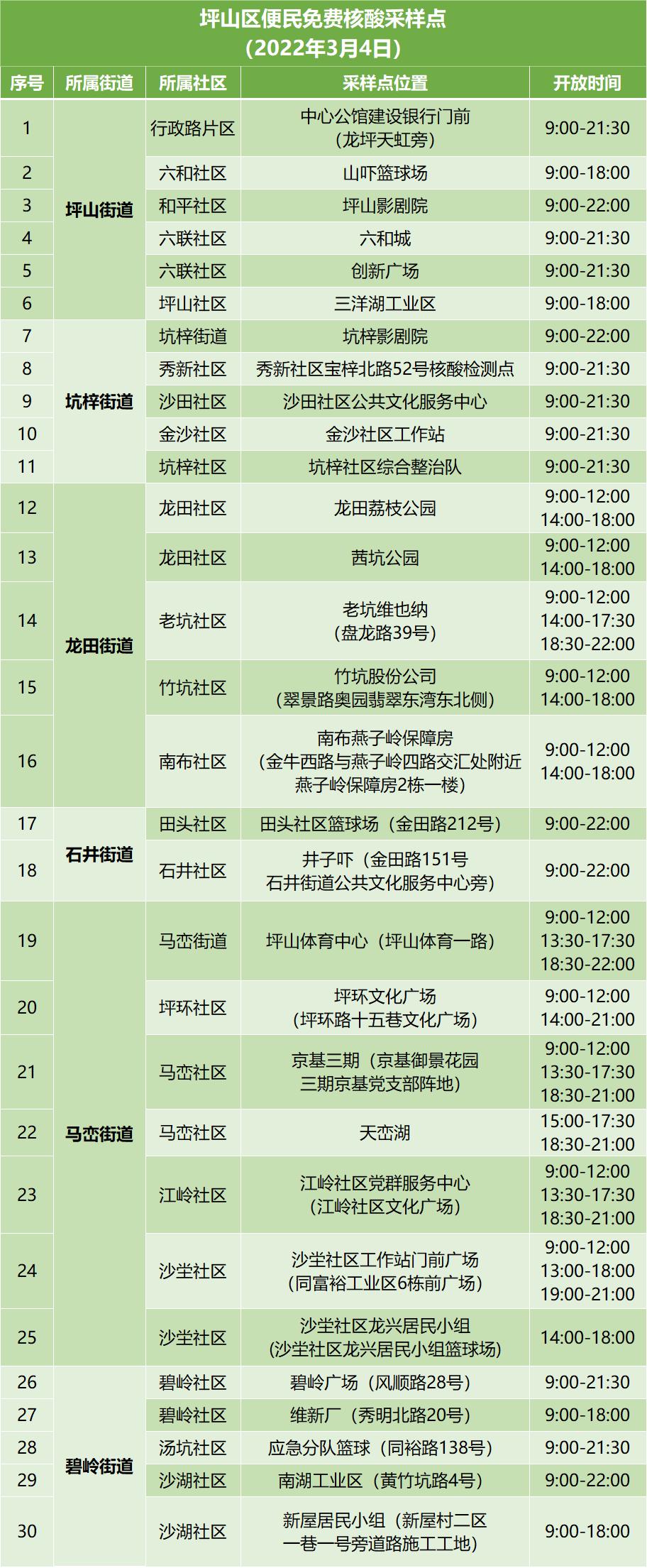 今天坪山免费核酸检测采样点
