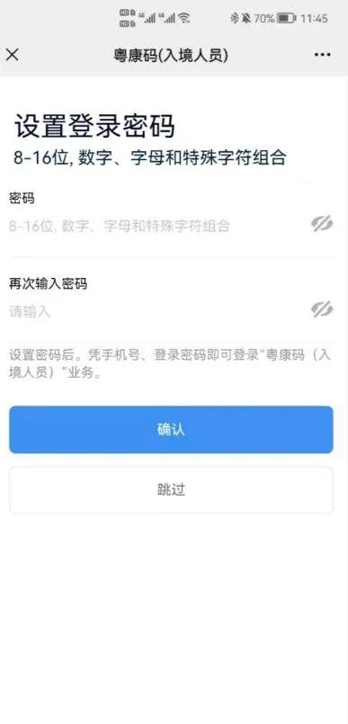 “粤康码”(入境人员版)设置登录密码
