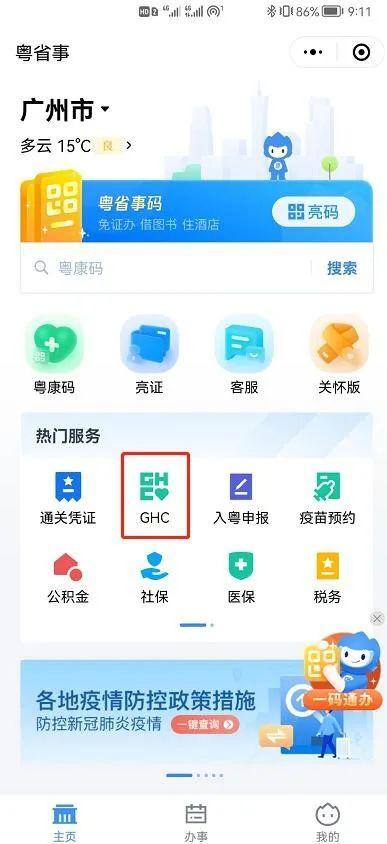 2.在“粤省事”平台的“GHC”功能,点击“立即申