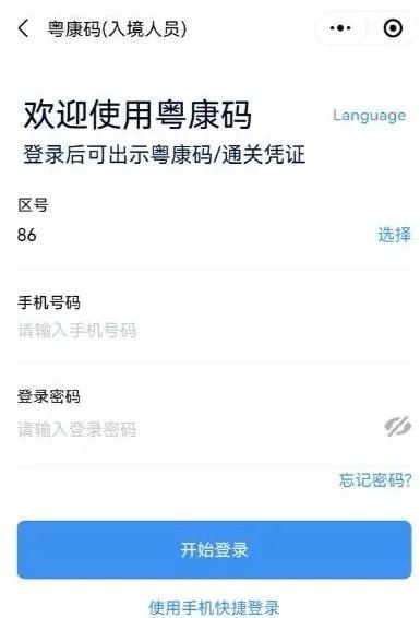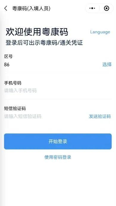 非首次使用“粤康码”(入境人员版)的人员,通过扫码或访问短信中的网址,进入“粤康码”(入境人员版)网页,填写本人手机号码,以及接收的短信验证码或设置的登录密码(通过下方的“使用密码登录”或“使用手机快捷登录”切换)后,即可查看本人的“粤康码”(入境人员版)。