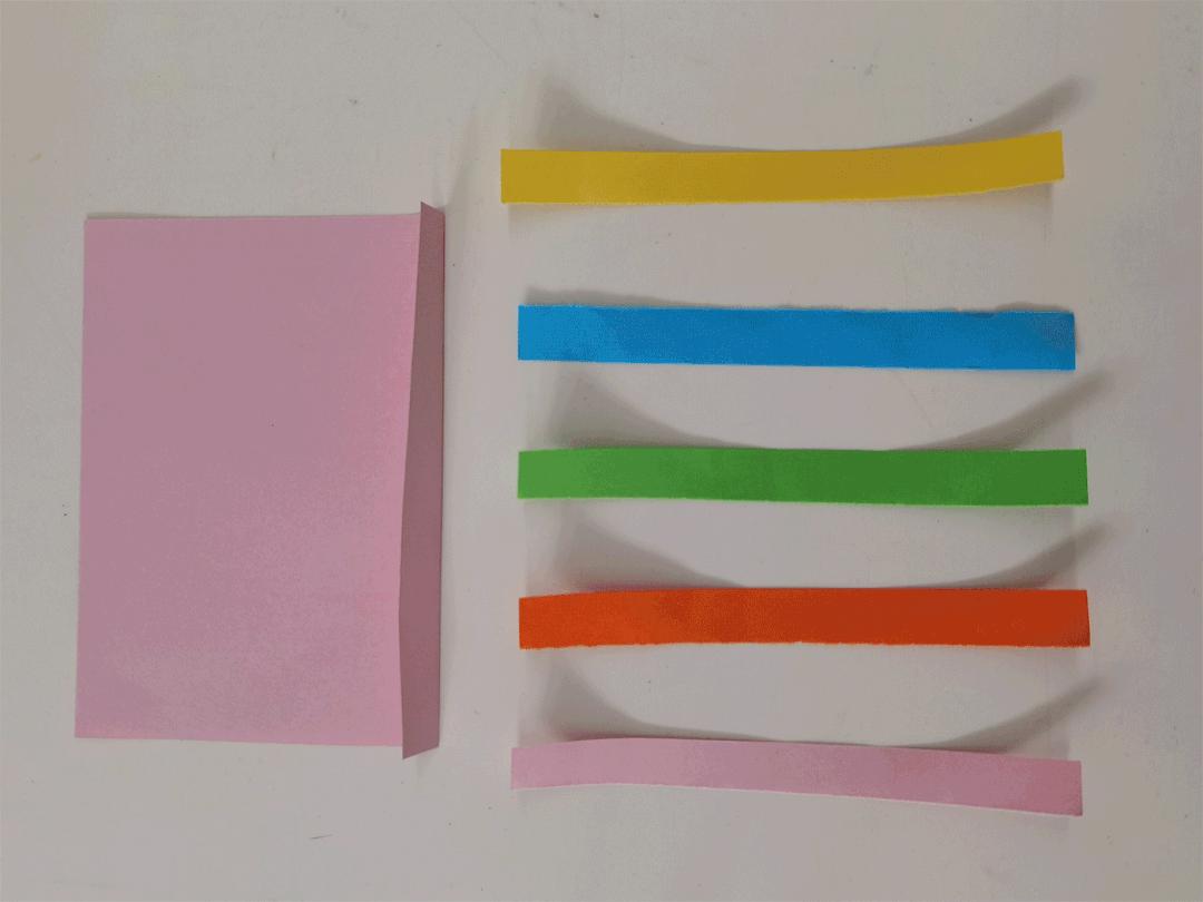 第二步:将准备好的彩纸裁成条形,并将裁好的彩色纸条围成纸环,注意纸环之间应当扣在一起。