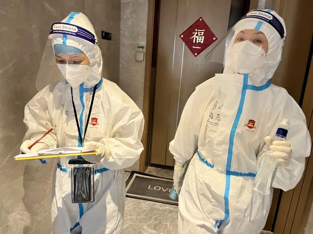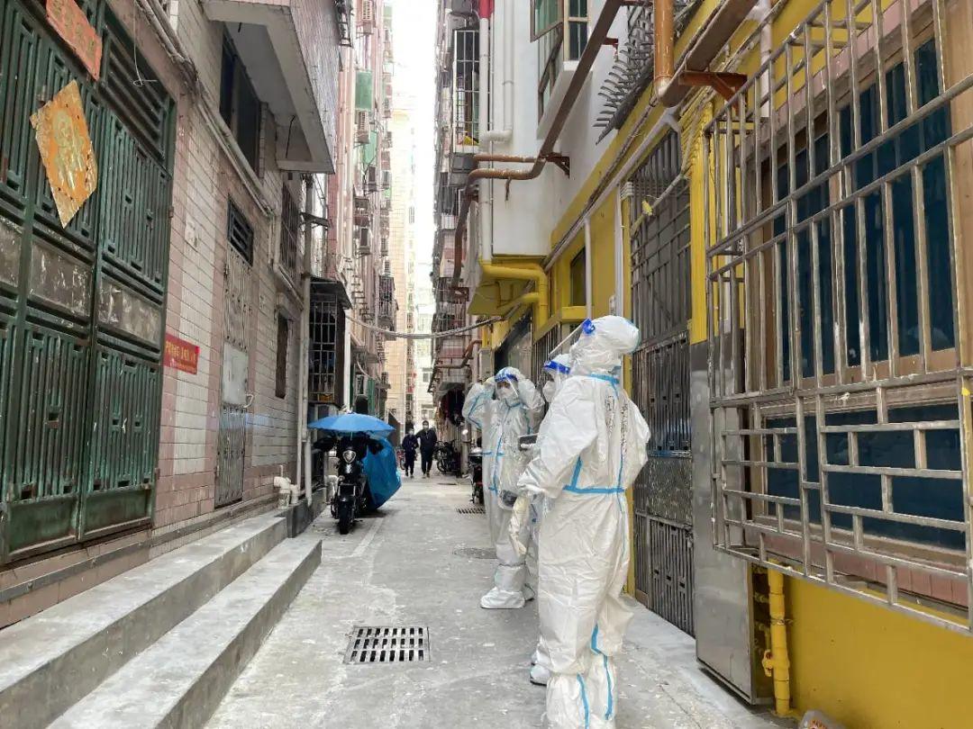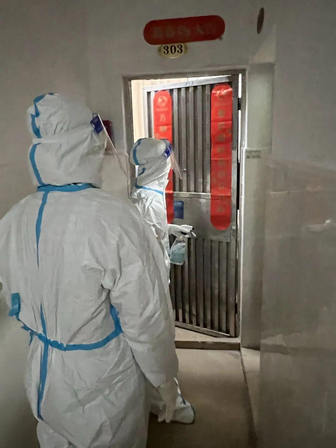 工作风险系数还是挺高的,因为毕竟这里就是封控区、管控区,就是在楼里面有病例。最困难的是四个未婚小女孩,像她们去扫楼,又是挨家挨户去敲门做些询问。城中村九点钟上楼,楼道里堆的到处都是杂物,里面也没有灯,很害怕,挺不容易的,但是我们还是愿意在一线做出自己应有的贡献。