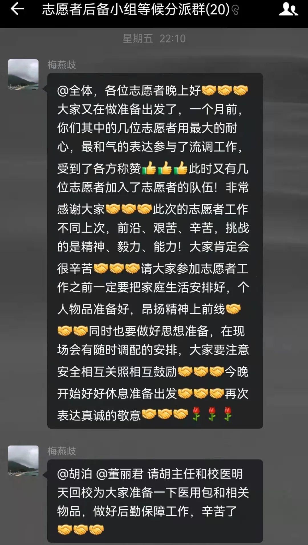 园岭小学在梅燕歧校长的带领下,给这些志愿者老师以最大的保障和支持。首先是物资上的支持,总务紧急购买了消毒水、烧水壶、充电宝、暖宝宝、一次性水杯、纸尿裤、保温杯等抗疫物资和生活上的物资交给志愿者老师们。其次是工作上教学任务的协调,有些老师还身兼班主任、任课老师,学校调整工作安排,让他们无后顾之忧,给他们最大的保障。同时,如果志愿者家里有困难,学校也尽可能地帮助他们,让他们更加安心的在一线抗疫。