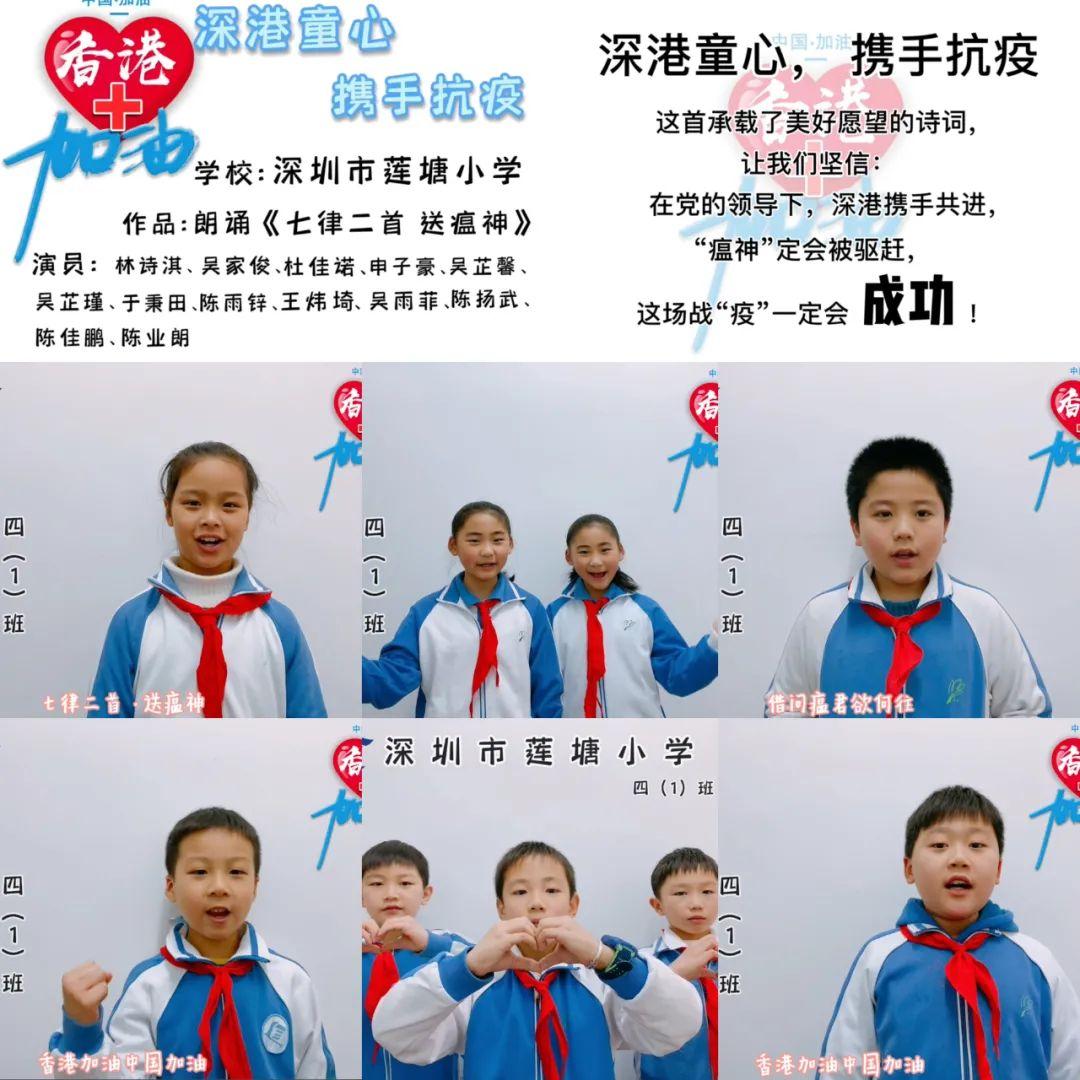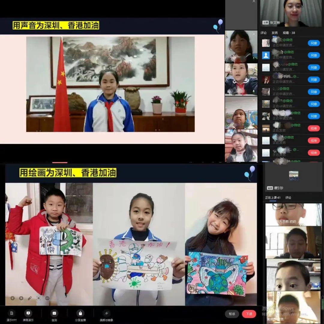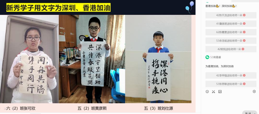布心小学举行了“深港童心 携手抗疫”线上活动,用书法、绘画、歌唱和朗诵等形式为香港加油打气,传递深港同根的温暖,感受“爱的力量”。
