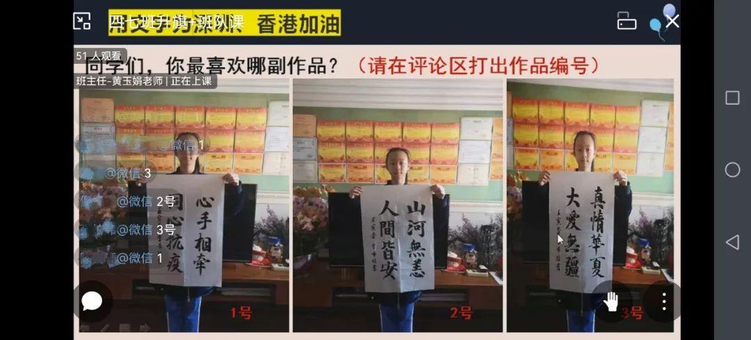 水田小学采用云直播的形式,开展少先队主题队活动,带领队员们为香港抗击疫情加油打气,传递深港同根的温暖。队员们用“书法、绘画、歌唱、演奏乐器、朗诵”等多种形式为香港加油鼓劲:书法中展示出坚定的信心;绘画中传递出深切的关怀;歌声中展现出强大的向心力。
