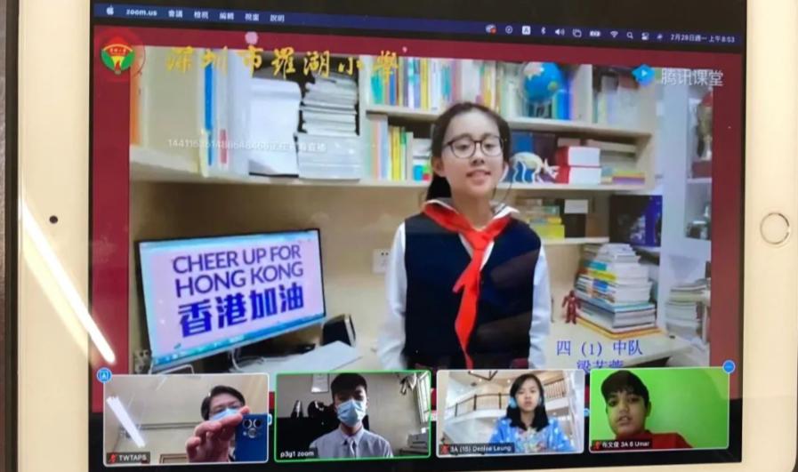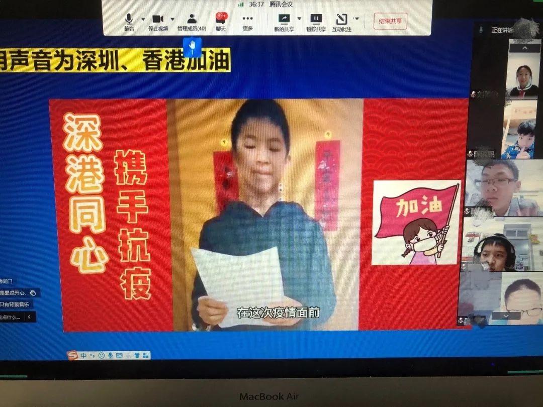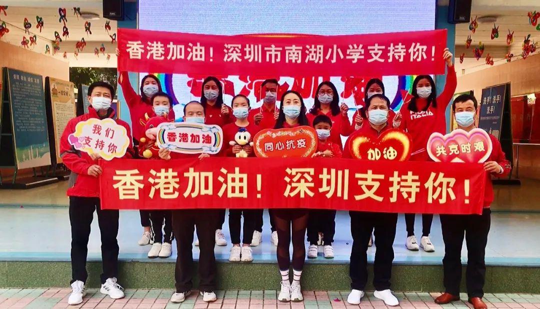 南湖小学举行了“深港童心 携手抗疫”的系列活动:录制为香港加油视频,一声声“香港加油”,一句句“深圳支持你”,都凝聚着深港情深的温暖;开展主题云升旗云班队会活动,一起关注香港疫情形势,学习抗疫政策,纷纷用自己的方式为香港加油打气。一张张照片、一个个故事,让少先队员们真切感受到了此次深港同心,携手抗疫的速度、力度和温度。