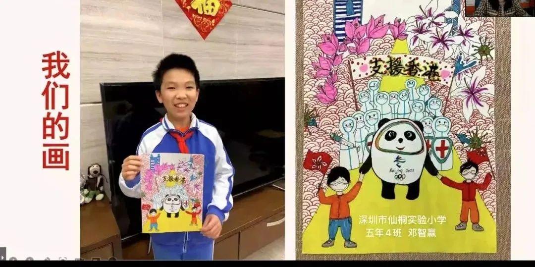 在“手牵手向前走:深港童心 携手抗疫”线上活动中,仙桐实验小学的同学们用一幅幅优美画作,一句句动听的歌声,为深圳、香港抗疫加油。