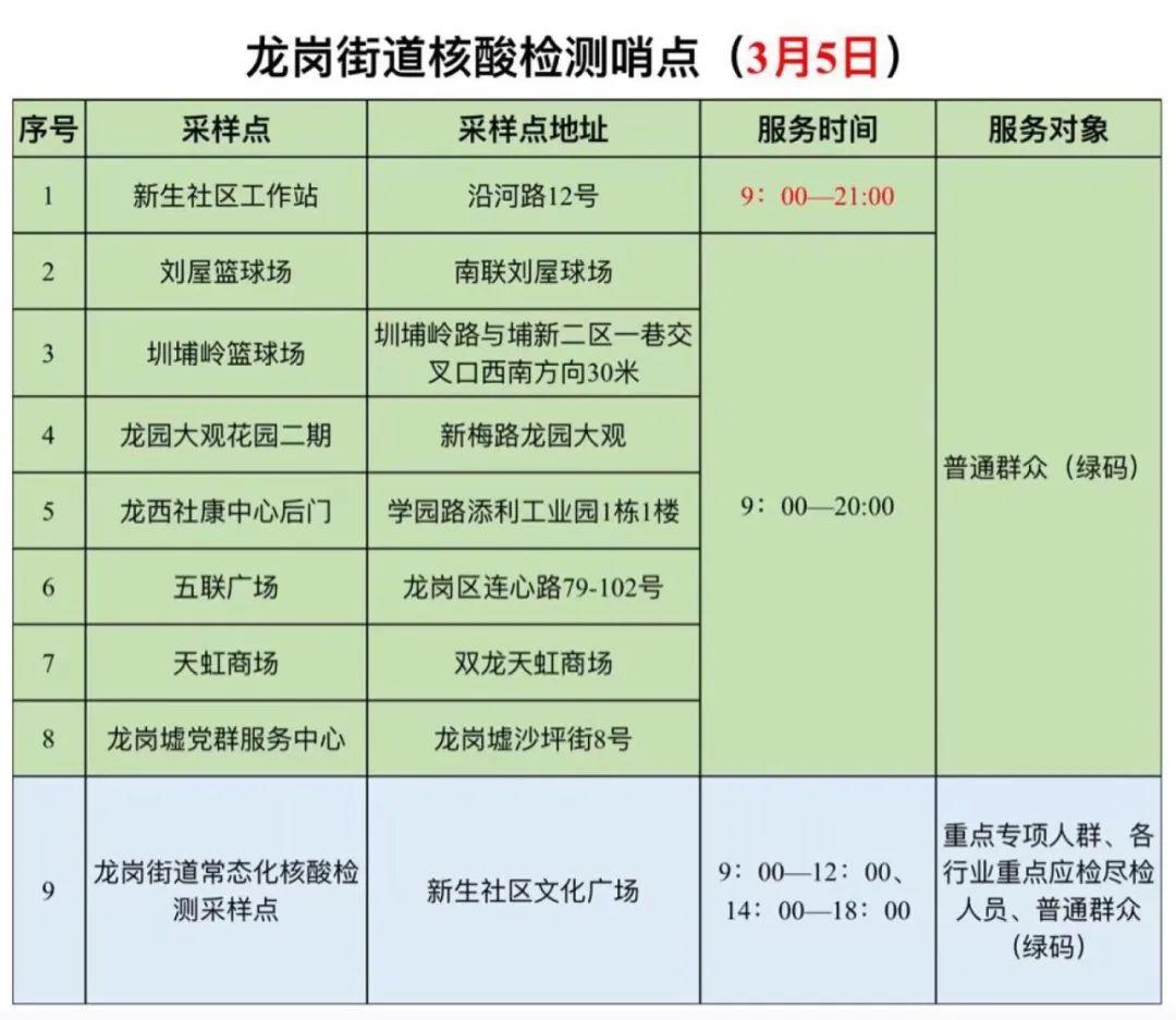 可到龙岗街道这些检测哨点哦