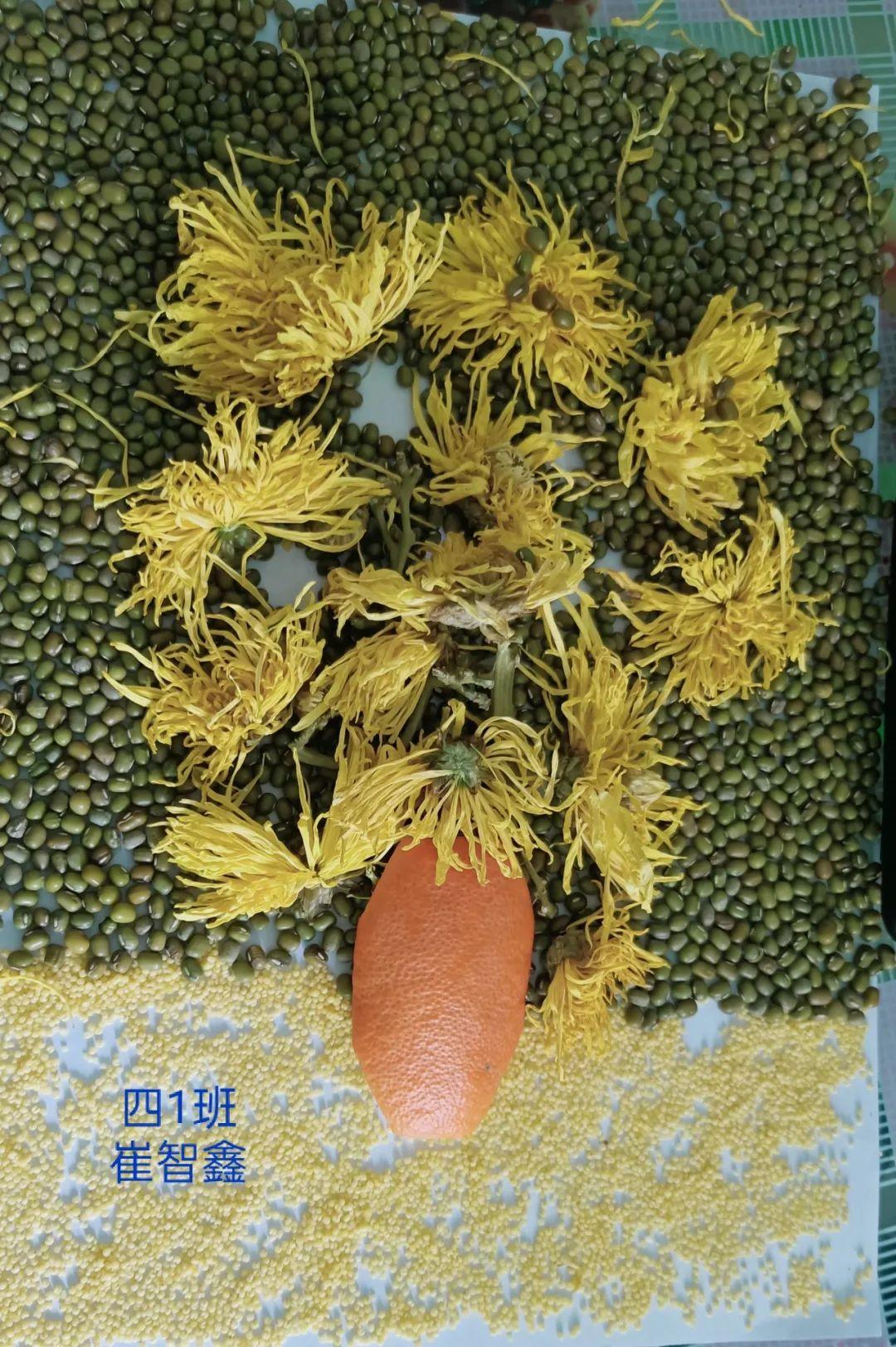 在四年级科学课《种子里孕育着新生命》作业中,要求学生设计主题版面,根据色彩搭配进行种子的选择,借此激发学生对种子的再认识。