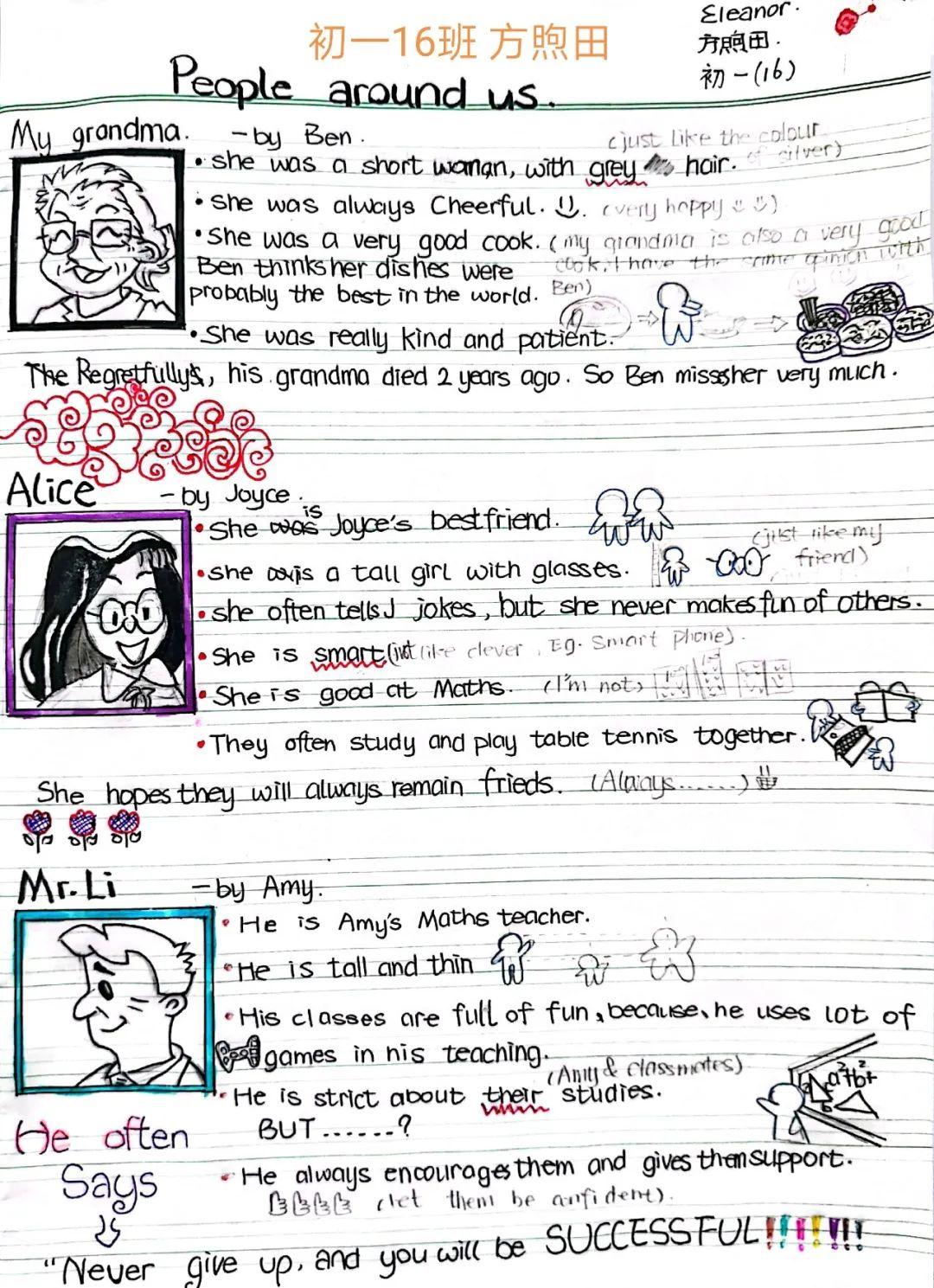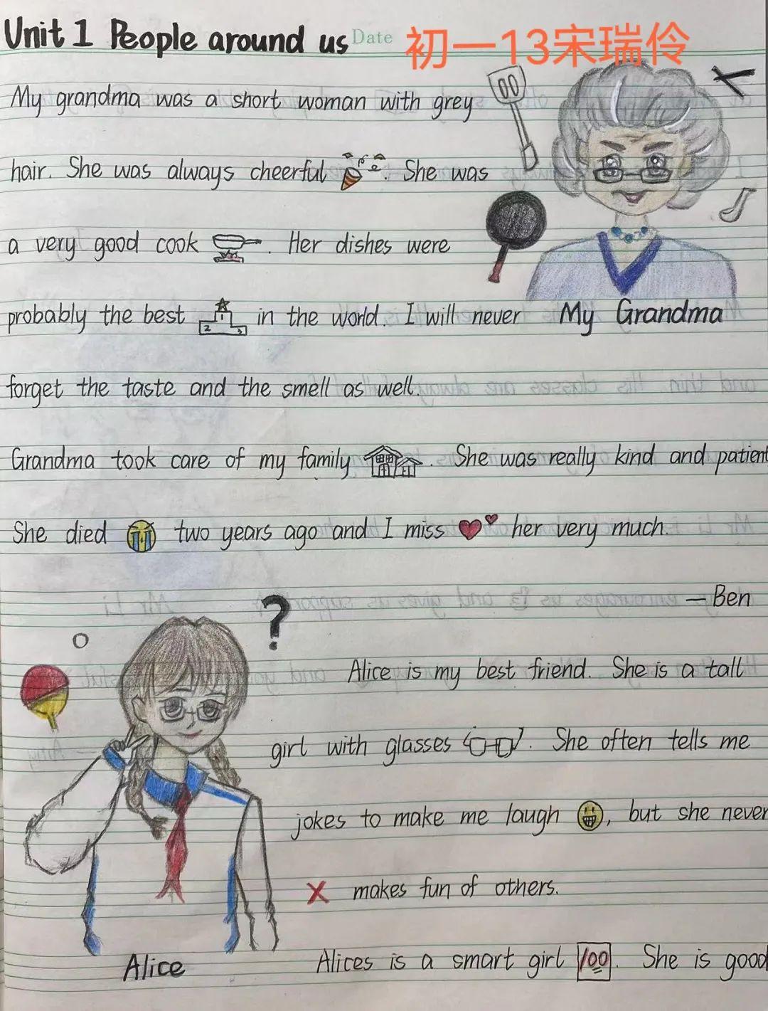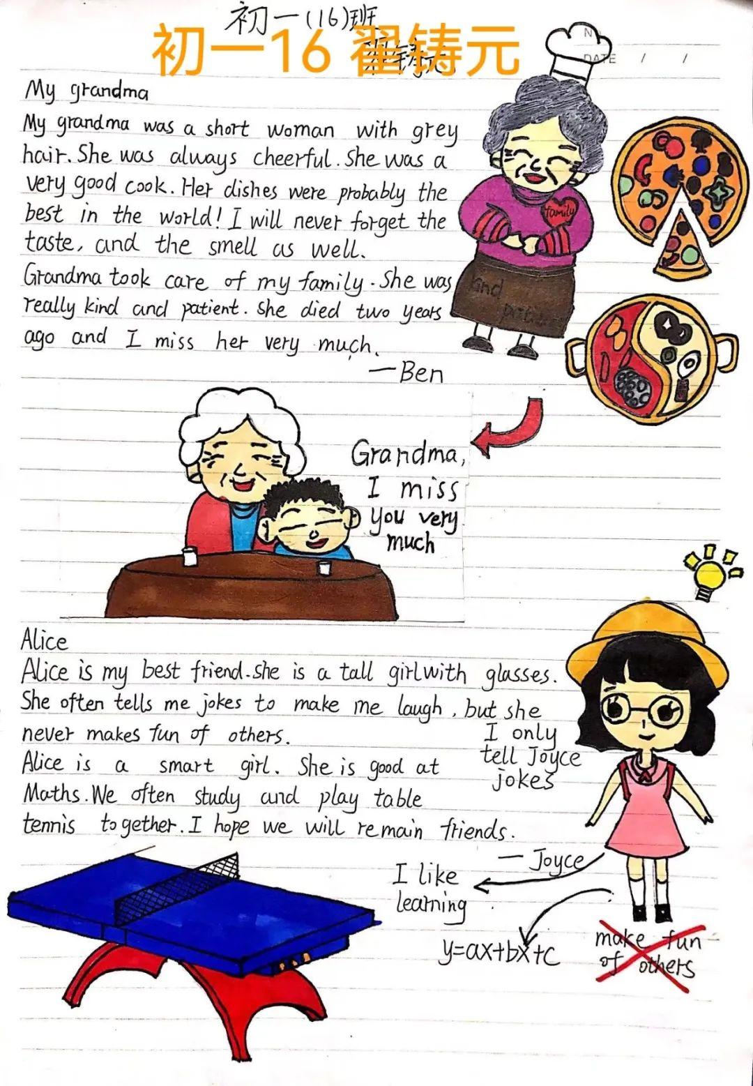 翠园东晓中学初一年级的英语教师们精心设计了富有创意的课文漫画作业。